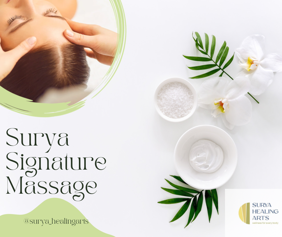 The Surya Signature Massage is a fusion massage that seamlessly blends together various massage techniques such as Swedish, Deep Tissue, Acupressure, Dry Cupping and Stretches.
